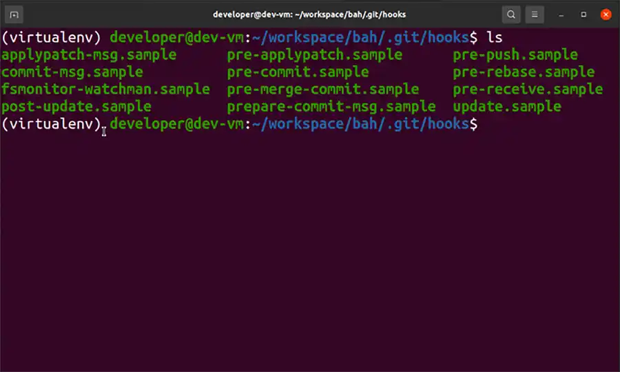 Now, how can you increase the damage of ransomware like this? If you can erase the git history for all existing copies of the projects that live on other developer workstations, you can work towards preventing recovery of the source code. A git hook could be used to erase all the history stored for the projects you are targeting for ransom. The following hook samples are added to every GitHub project upon creation: